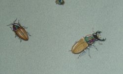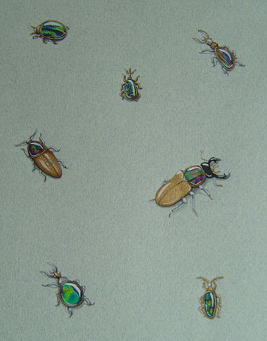The Design process begins in consultation with the client, or with a brief, and the materials to be used. Preliminary sketches are explored into a final design. This final design is then painted in watercolour and gauche with exacting detail.